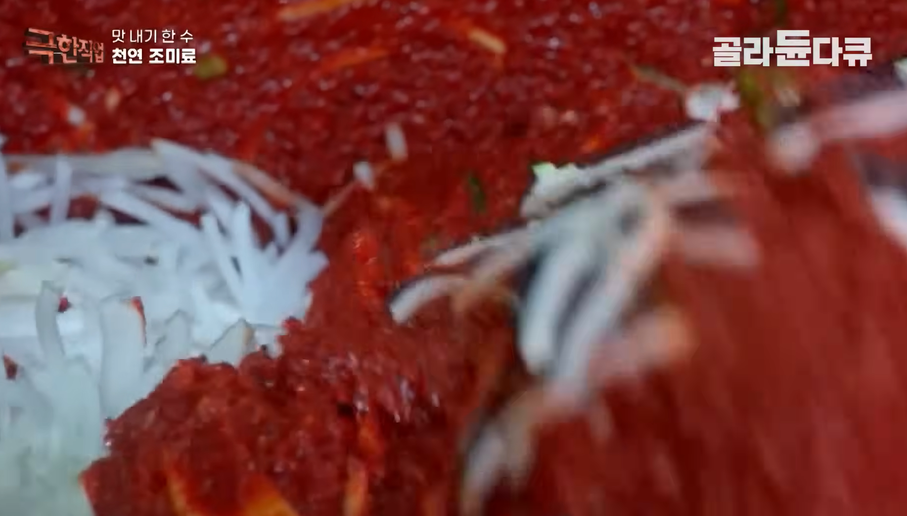 김치소에 이어 다큐는 청양고추 조미료 제작 과정을 조명합니다. 수작업으로 꼭지를 제거하고, 세척한 뒤 진공 건조기에서 고추를 말리는 장면은, 단순히 ‘맵다’는 인상을 넘어서 매운맛의 섬세함과 정밀함을 보여줍니다.