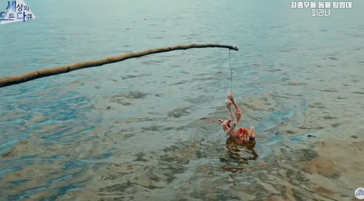 - 야생 피라냐 무리 실험: 닭 사체를 넣자 90초 만에 뼈만 남기는 위력을 실시간으로 촬영.