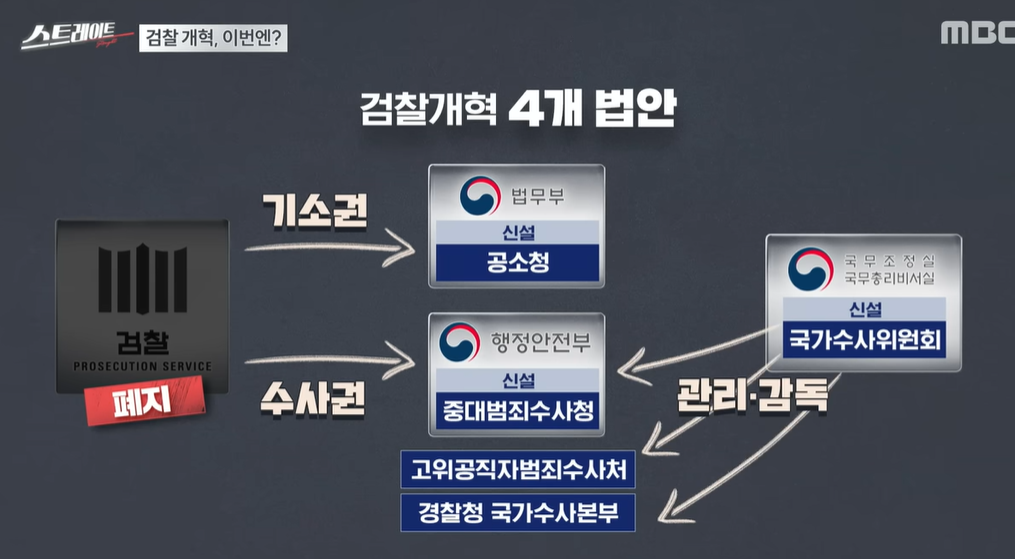 - 검찰청 해체 및 공소청, 중대범죄수사청 신설