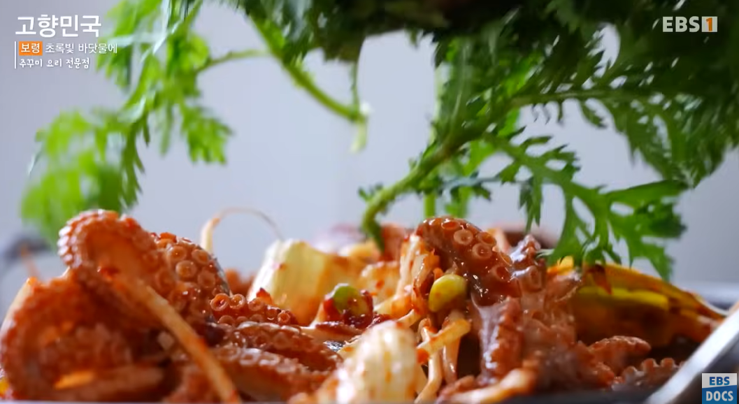 무창포에서 잡힌 자연산 해산물은 단순한 ‘구경거리’를 넘어 미식의 영역으로 확장됩니다. 영상에서는 직접 잡은 광어로 만든 회, 주꾸미 볶음 등 지역 식당에서 즐기는 제철 음식이 소개됩니다. 특히 알이 꽉 찬 주꾸미는 봄철에만 맛볼 수 있는 별미로, 주꾸미 철망에 가득 찬 생물들은 눈과 입을 동시에 만족시킵니다.