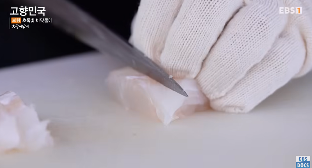 보령 앞바다는 낚시 마니아들 사이에서 ‘대광어 1번지’로 불립니다. 영상에서는 대광어를 낚기 위해 이른 새벽부터 배를 타고 출항한 낚시꾼들의 모습이 그려집니다. 70~90cm에 달하는 광어가 낚일 때의 환호와 생선의 버둥거림은 그 자체로 손맛을 시청자에게 전달합니다.