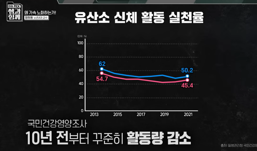 이 다큐멘터리는 노화를 단지 '개인의 책임'이 아닌 사회 구조적 문제로 접근합니다. 스마트폰 없이 성장한 부모 세대는 활동량도 많았고, 경제성장 혜택도 누렸으며, 사회 스트레스도 지금보다 적었습니다.