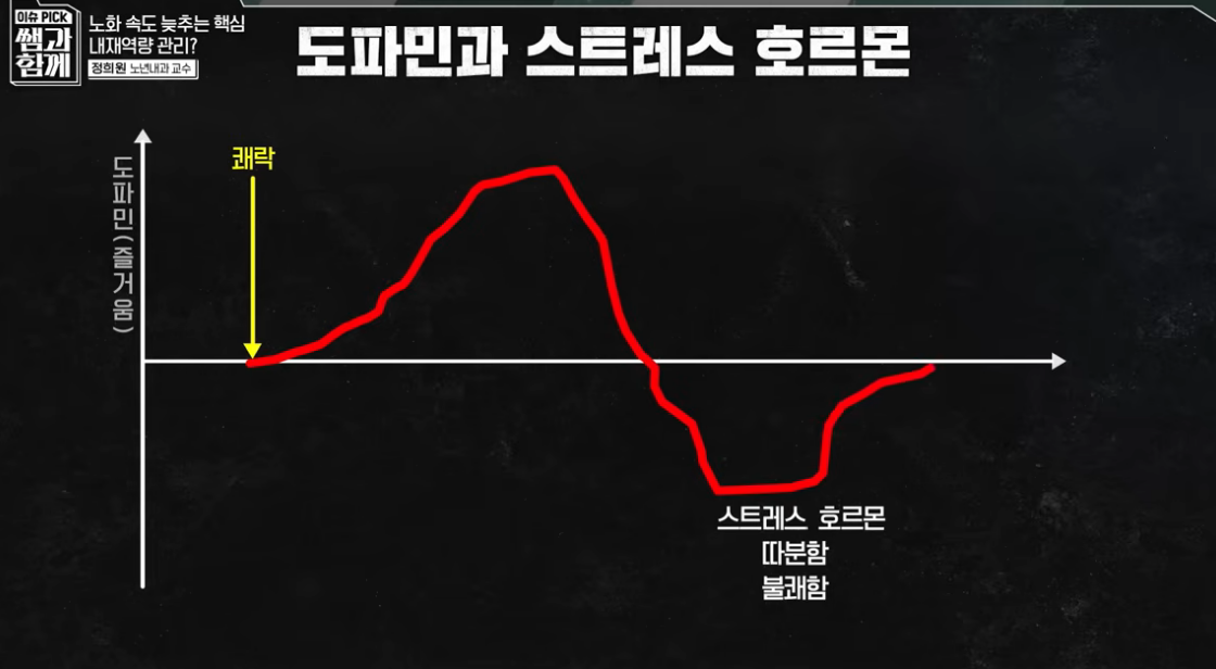 - 스트레스는 코티솔 증가 → 근육 감소 → 내장지방 축적 → 가속 노화로 이어집니다.